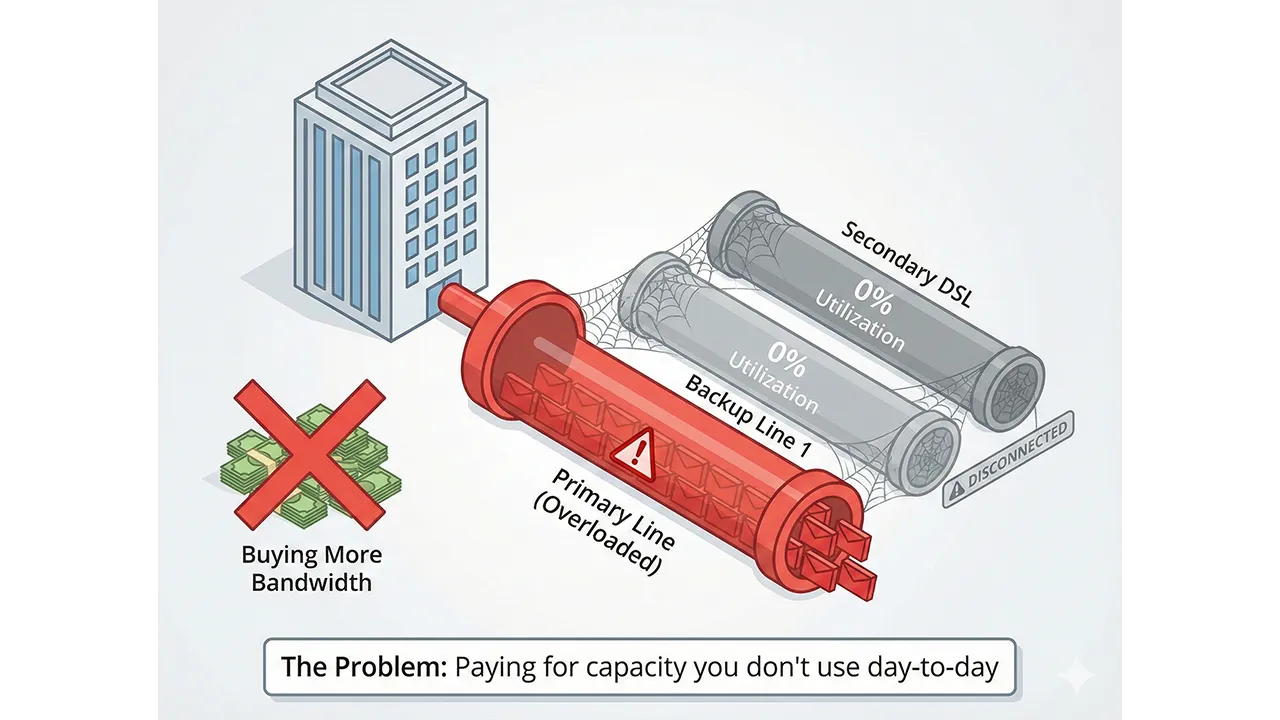 When applications begin to lag, employees experience interruptions in workflow, file delays, video meeting instability and time-consuming retries. These symptoms are commonly blamed on insufficient bandwidth, but the true cause is often uneven line utilization, idle backup links and inefficient load handling.