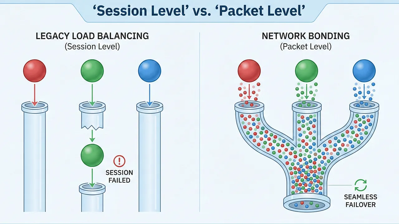 Quite often, there is significant confusion among IT managers when comparing legacy load balancers with modern Network Bonding technologies. While these solutions may appear similar on the surface, the underlying mechanics and performance outcomes differ drastically.
